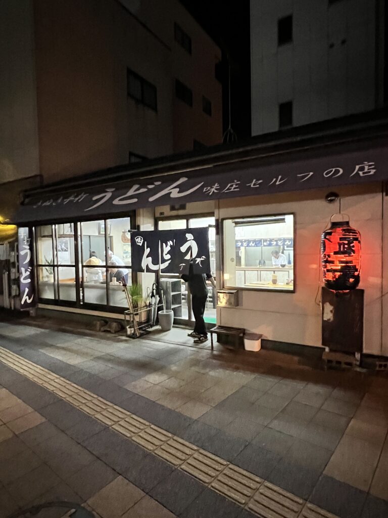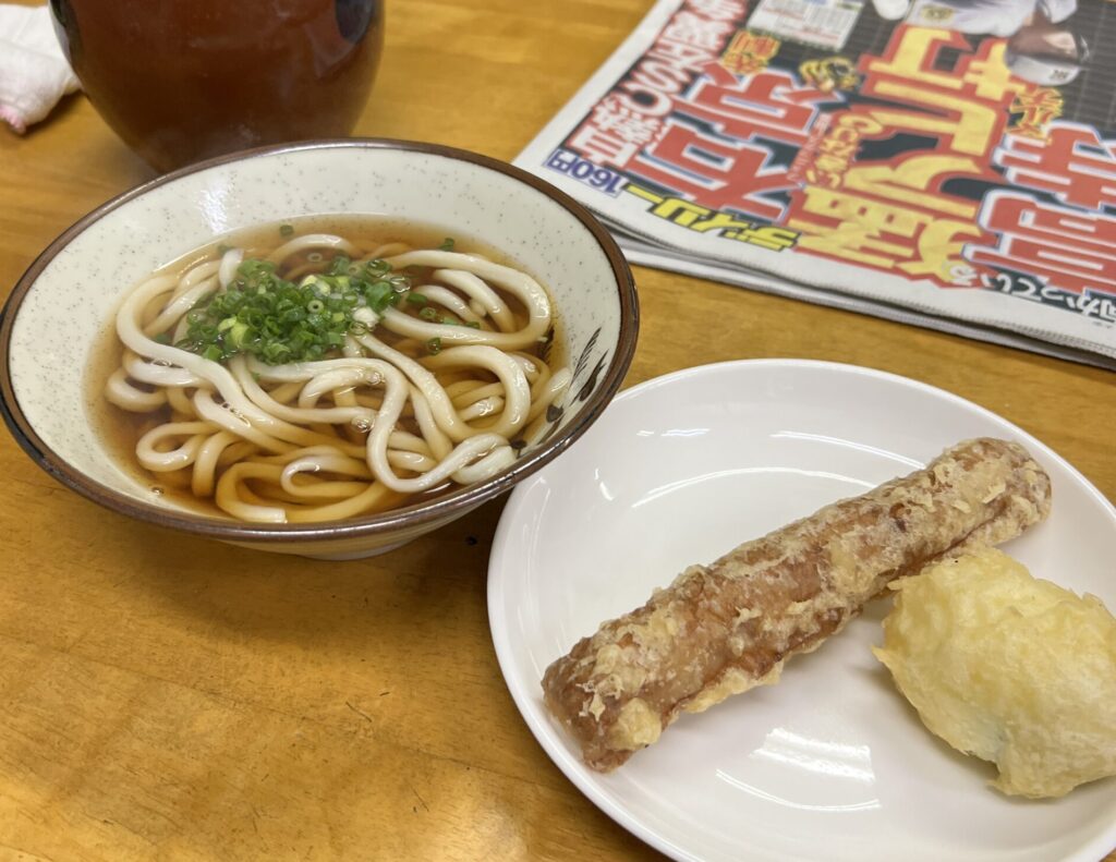 - 特徴:早朝営業、セルフ天ぷら、コシの強いうどん