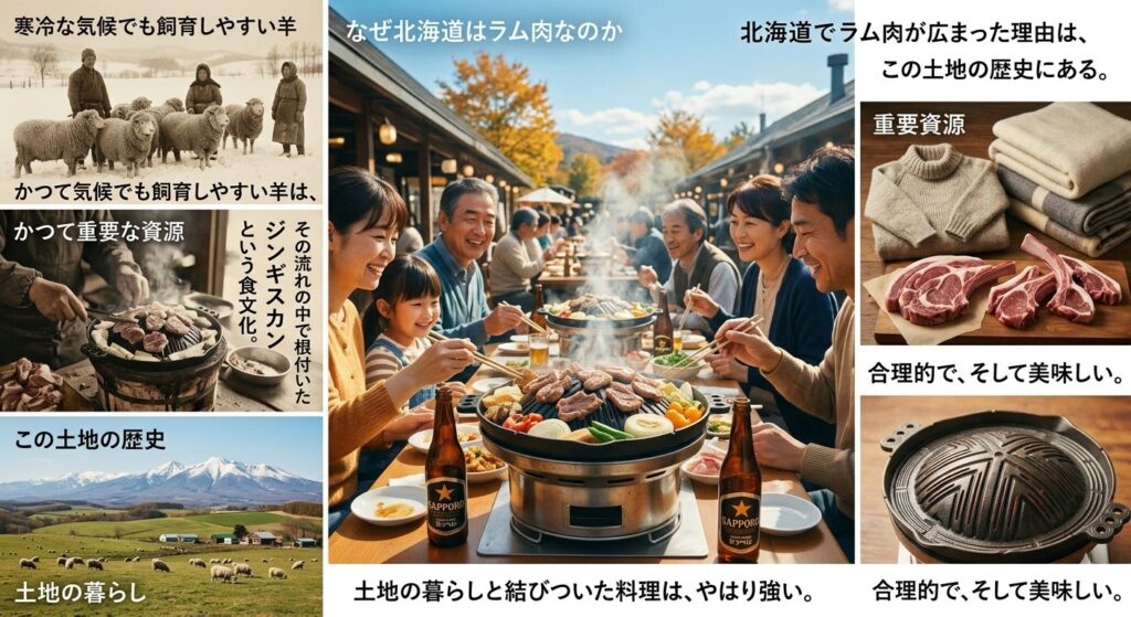 北海道でラム肉(ジンギスカン)が広まった背景には、